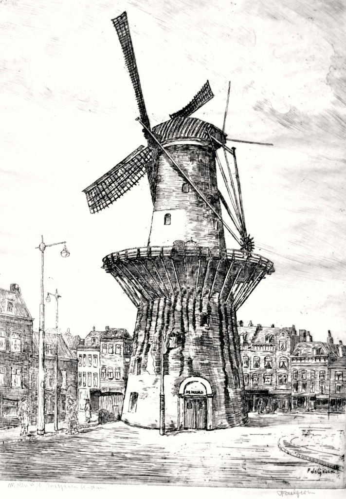 l.o. “Molen a h Oostplein R’dam”| gesigneerd r.o. in de druk en r.o. in potlood in de marge