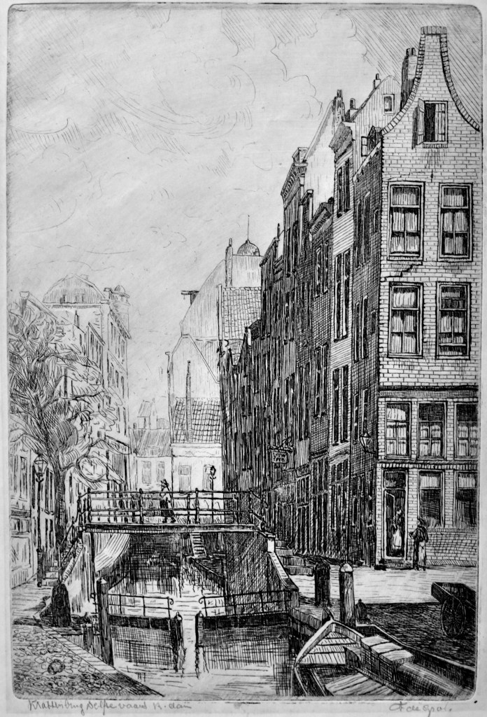 annotatie l.o. in potlood “Krattenbrug R’dam Delfsevaart” | monogram FG r.o. in de druk | Gesigneerd r.o. in potlood