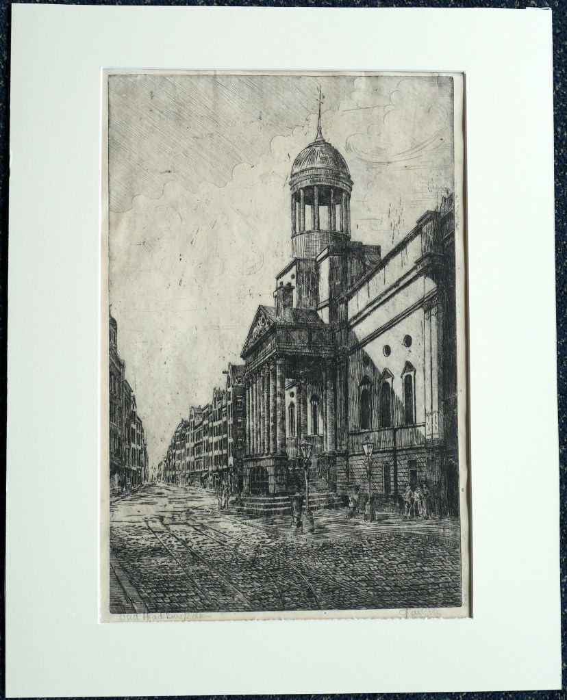 Annotatie l.o. “Oud Stadhuis R’dam” | Gesigneerd in potlood r.o. | monogram FG r.o. in de druk
