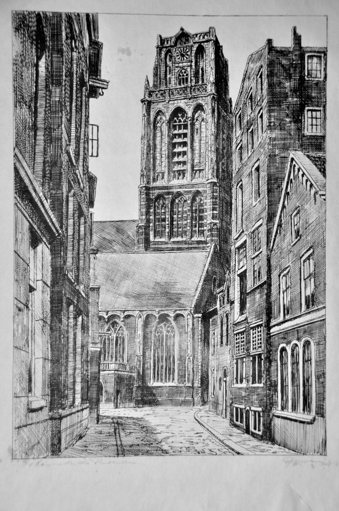 Annotatie in potlood l.o. “Sint Laurenskerk Rotterdam” (?) | Gesigneerd in potlood r.o. onleesbaar